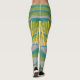 Bright yellow rays of sunlight upon blue, green and white striped leggings make this pair fun to wear; a hand-painted work of art.