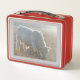 This is a standard metal lunchbox that appears to work just fine. We designed this box ourselves with an uploaded photo and custom text on the front and back. It looks absolutely beautiful except the front of the lunchbox is not centered like it shows in the photo. The print borders don't align with the inset flat part of the box where the preview photo online showed it perfectly centered in there. The back looks nice and centered though.