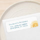 This sun-themed baby shower return address label is decorated with a cute yellow watercolor smiling sun and blue text.