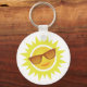 A bright yellow sun wearing sunglasses. This design looks really effective on these Keychain