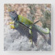 Add some character to a room with this custom 10.75 square inch acrylic wall clock. This clock face is adorned with a photograph of a colourful collared lizard (Crotaphytus collaris) straddling a rock in the sun.