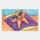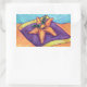 Sunbathing Starfish art from our original Under the Sea art by Traci Van Wagoner features a cool orange starfish in sunglasses sunbathing on a purple and yellow beach towel. Let summertime commence!