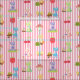 Patterns include Sunbonnet Sue in the garden on pink and white striped background.
