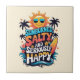 Sunburned Salty and Happy – Retro Beach Vibes Ceramic Tile