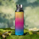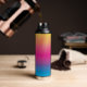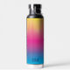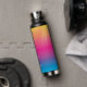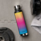 Nothing fancy on this water bottle; just a burst of rainbow colour! The top is sunny yellow, with streaks going down into rose pink. The lower portion has a touch of lavender and purple moving into sky blue. Your monogram, name or other text is at the centre bottom.