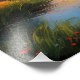 Witness the sun's fiery farewell from a tranquil swampy meadow, where vibrant grasses paint the land in hues unseen. Trees stand sentinel on the horizon, adorned in the warm embrace of twilight. In this digital artwork, classic oil-painting style captures the symphony of colours as day bids adieu, leaving behind a tapestry of nature's brilliance.