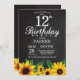 Sunflower 12th Birthday Invitation. Floral Flowers and Chalkboard Background. Country Vintage Retro. Kids Girl Birthday. 12th 13th 15th 16th 18th 20th 21st 30th 40th 50th 60th 70th 80th 90th 100th, any ages. Printable Digital. For further customisation, please click the "Customise it" button and use our design tool to modify this template.