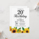 Sunflower 20th Birthday Invitation. Floral Flowers and White Background. Country Vintage Retro. Women Birthday. 12th 13th 15th 16th 18th 20th 21st 30th 40th 50th 60th 70th 80th 90th 100th, any ages. Printable Digital. For further customisation, please click the "Customise it" button and use our design tool to modify this template.