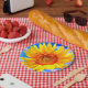 Paper Plates with Yellow Sunflower and Bees on Blue Sky Summer Day Party Plates - or Choose / Add Your Unique Photo - Image / Text - Name / Colour / Font / Size / more - Make Your Special Gift - Resize and move or remove and add image / text with Customisation tool. Design by MIGNED. Please see my other projects / designs and paintings. You can also transfer my designs to more than 1000 Zazzle products.