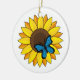 A drawing of a cartoon sunflower and a blue butterfly. This yellow floral design is a gift idea for summer lovers, flower and nature lovers, and autumn lovers.