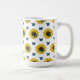 A drawing of a cartoon sunflower and a blue butterfly. This yellow floral design is a gift idea for summer lovers, flower and nature lovers, and autumn lovers.