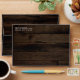 Design features a barn wood grain background decorated with a floral element at the top (inside) that consists of watercolor garden eucalyptus, greenery, burgundy red roses and a sunflower. Design also features twinkle string lights with country rustic lighted mason jars.