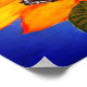 Beautiful original art designed poster featuring a butterfly on a sunflower. Vibrant colours of yellow, orange, blue and red make it very alltractive and eye-catching