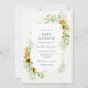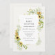 Sunflower-themed baby shower invitation honouring the mummy to be! Design features a frame of watercolor sunflowers and greenery. Personalise with your information or click "Click to customise further" to edit font styles, size and colours.