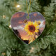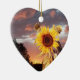 SUNFLOWER AND PINK SUMMER SUNSET Heart Ceramic Ornament