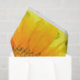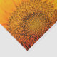 Gift tissue paper with image of a yellow sunflower against a black and white polka dot background.
