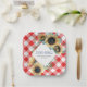 Rustic personalised paper wedding plates for your couples shower, bridal shower, country wedding shower or I Do BBQ feature a gingham boarder with watercolor sunflowers and greenery on a red tartan chequered pattern. Personalise with your names and date. To see more gingham print designs like this visit www.zazzle.com/vginvites