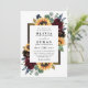 Design features elegant watercolor roses, peonies, wildflowers and sunflowers in various shades of burgundy red, navy blue and more over a wreath of eucalyptus greenery. Design also features a barn wood frame underneath the wreath. A unique font layout compliments the overall design. You can change the background colour on the front and back to the colour of your choice or leave both set to white. View the collection on this page to find matching wedding stationery products.