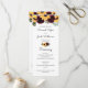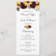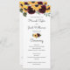 This rustic sunflower and roses wedding program is perfect for an outdoor garden ceremony. It features beautiful watercolor sunflowers and roses with sage green greenery. It is perfect for a garden wedding or a country barn wedding. The colour scheme of yellow, burgundy and sage green is a lovely colour palette for a late summer or fall wedding. For further customisation, please click the "customise further" link and use our design tool to modify this template.