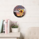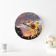 SUNFLOWER AND SUMMER SUNSET WITH PINK CLOUDS LARGE CLOCK