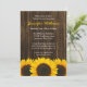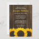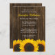 A country themed bridal shower invitation featuring yellow sunflowers on a dark rustic brown barn wood background. Perfect for a western bridal shower, country bridal shower, outdoor bridal shower and more!