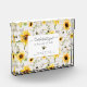 "Sunflower Bee Rustic Wood Yellow Birth Stats Baby Photo Block." Memorialised your new little one with your baby's birth stats: full name, date, time of birth, weight and length are easily customised using the template fields. Rustic white cottage wood with sunflowers, eucalyptus leaf greenery, dried foliage and bumble bees were painted by internationally licensed artist and designer, Audrey Jeanne Roberts. Copyright.