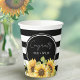 Sunflower Black and White Stripes Wedding Shower Paper Cups