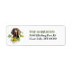 The left side of these return address labels feature a watercolor image of a black and tan Coonhound among scattered sunflowers and eucalyptus leaves. Your custom text is in green and black at the right.