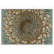 An in-your-face print of a sunflower bloom on a blue-green background. You can almost hear the bees humming near the flower, ready to help pollinate world with this botanical beauty!