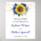 This wedding sign features a watercolor design with sunflowers, blue roses, foliage and string lights. Personalise it with your own text. This product is part of a wedding suite collection featuring matching products. Please visit our store or view the collection page to see the full range.