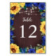 Sunflower Blue Rose Border Lights Wood Wedding Table Number