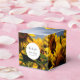 This design features sunflowers and a blue sky background. The simple white circle frames with its elegant typography is placed on top of the the rustic sunflower fields photo to create a stunning design. The yellow and blue tones of the sky and sunflowers create a natural country garden feel. Elegant wedding favour box design with modern elements. Matching wedding invitations and other stationery items are also available.
