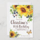 Sunflower Birthday Invitation - Elegant Boho Sunflower Rustic Birthday Invitation - Beautiful boho-inspired invitation featuring rustic watercolor sunflowers, boysenberries, butterfly and lush green leaves complemented with elegant earthy brown text. Personalise with your own wording/details! If you want to change the font style, colour or text placement, simply click the "Customise Further" button.