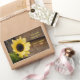 Bookplate sticker with a photo of a sunflower by a wooden wall. Customisable.