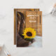 Invite guests to a casual barn party honouring the cowgirl high school or college graduate with the quaint Sunflower and Cowboy Boots Country Western Graduation Party Invitation. Customise it with the specific details of your event. This rustic chic custom ranch theme grad party invite features a farm style photograph of a pair of brown leather cowboy boots and yellow sunflower blossom with a barn wood background. Perfect inspo or idea for an informal barn party celebration event. Available as a printed invitation for mailing or as a digital download for easy sharing digitally online.