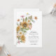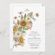Sunflower Botanical Wedding Invitation. This modern wedding invitation features stunning hand-painted watercolor pink and dusty blue wildflowers, beautiful yellow sunflowers, and sage greenery arranged as a lovely bouquet that's perfect for those who love whimsical boho / bohemian elegance. Find matching items in the Modern Sunflower Wedding Collection.