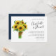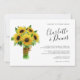 sunflower bouquet and navy blue horizontal wedding invitation