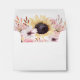 These custom printed wedding envelopes fit RSVP or response cards. They feature a floral bouquet composed of sunflowers and other blooms in yellow, pink and brown and complementing warm colours making it perfect for late summer and early fall weddings. The inside of these envelopes is illustrated with a coordinating sunflower bouquet. Use the template fields to easily personalise these with your information. Have more information you need to include? Select the CUSTOMIZE option to add additional text to these envelopes.