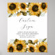 Rustic floral theme bridal shower custom sign. Watercolor illustration of yellow sunflowers with baby's breath.