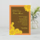 Striking invitation great for a gathering to celebrate love. Features sunflowers in typical colours, different sizes, and a tiny polka dots pattern in the centre of the flower. The colours and design make this card suitable for the Fall months. Ideal for a bride that appreciates the Autumn season and has a taste for sunflowers. The elegant and playful design will set the tone for a cosy and friendly event. Add your own wording.