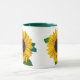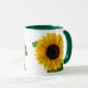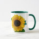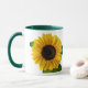 Sunfower with bright petals and cheery honeybee on classic mug, adds a lively touch to morning coffee or tea!