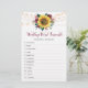 Sunflower Burgundy Lights Bridal Shower Word Game