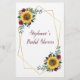 This bridal shower game is a wedding word scramble with 12 words to unscramble. It features a watercolor sunflower and burgundy floral design with faux gold foil geometric frame on the back. Personalise the text on the back with the bride's name.