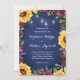 Sunflower Burgundy Rose Jar Lights Navy Wedding Invitation