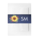 Sunflower Burgundy Rose Navy Blue Wedding Monogram Invitation Belly Band