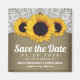 Sunflower Burlap and Lace Save the Date Magnets - feature a printed country rustic burlap and lace background with sunflowers.