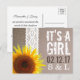 Sunflower Burlap & Lace Baby Girl Announcement Postcard