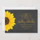 This cheerful sunflower chalkboard style wedding invitation features a chalk-drawn sunflower with bright, colourful petals in shades of gold at the left border on the front of the invitation - a single sunflower also accents the back of the invitation at the left edge - by katz_d_zynes