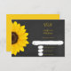 This cheerful sunflower chalkboard style wedding invitation features a hand-drawn chalky sunflower with bright, colourful petals in shades of gold at the left border on the front of the card - the back of the card is a customisable solid colour, currently gold to coordinate with the flower - by katz_d_zynes