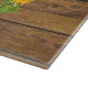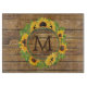 This personalised cutting board has your monogram in brown at the centre of a bright and colourful sunflower circle frame. Colours in the sunflowers are predominantly yellow gold, green, and rich orange brown. The frame and the monogram are placed on a golden faux wood panel background that seems to almost glow. Unique, attractive, and personalised for you! *Design credit to LeCoq Design for the floral image used.